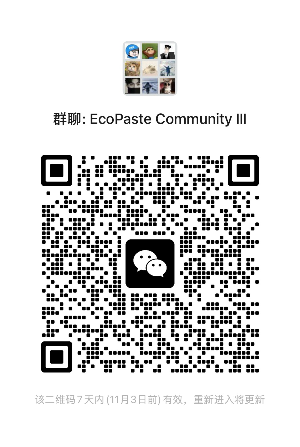 🎉 欢迎加入 EcoPaste 社区交流群!这里是大家交流经验、分享点滴的小天地,期待你的加入,一起畅所欲言~