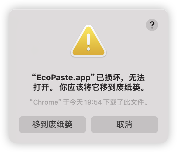 由于应用需要官方签名,才能避免安装后弹出“应用已损坏”的提示,但官方签名的费用昂贵(每年 99 美元),开源项目无法负担。因此,需要手动绕过签名以正常使用 EcoPaste。