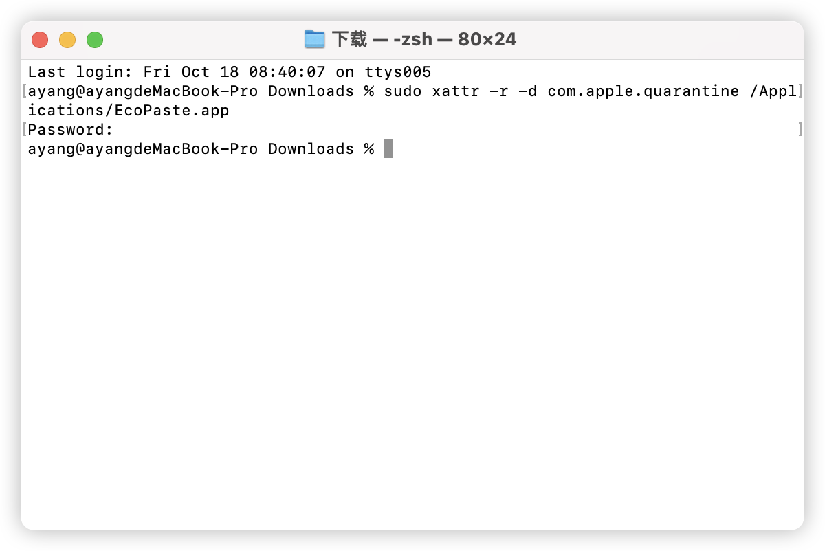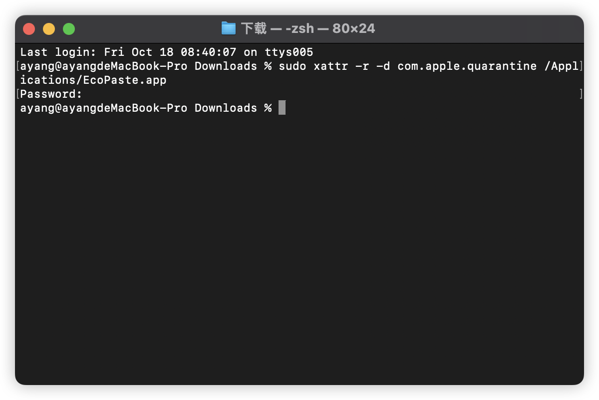 sudo xattr -r -d com.apple.quarantine /Applications/EcoPaste.app